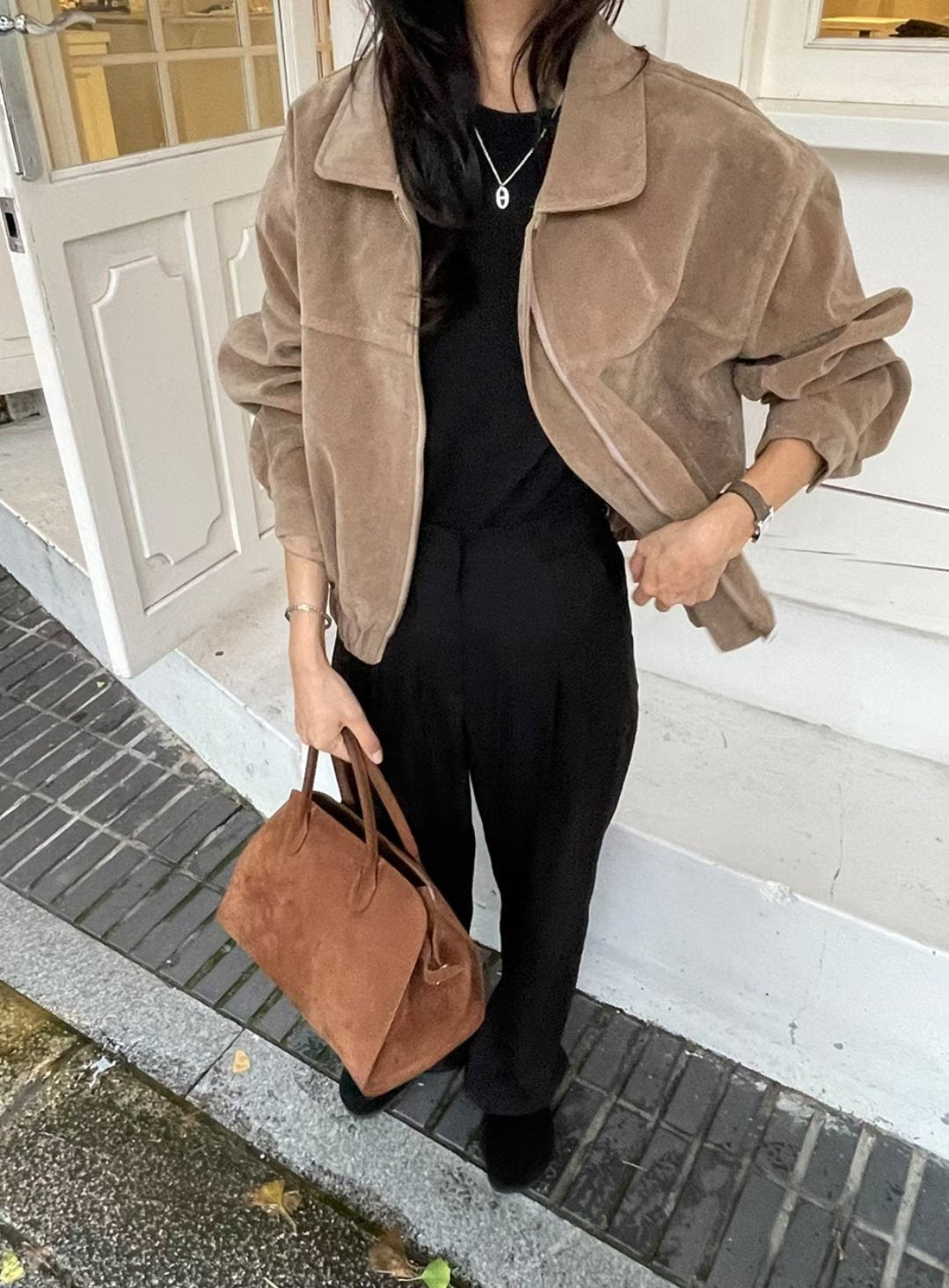 【美拉徳麂皮外套】Millard Solid Crop Jacket