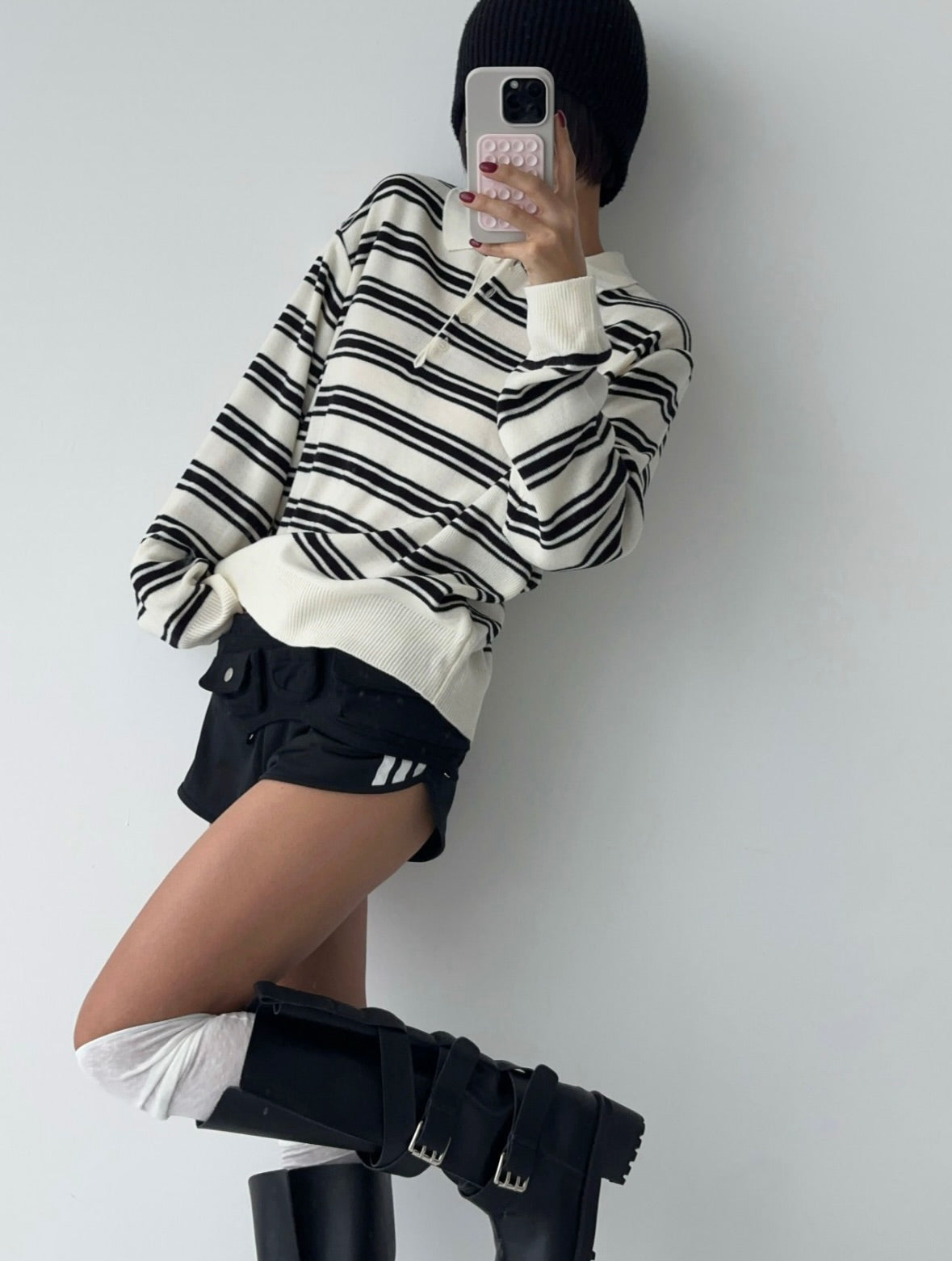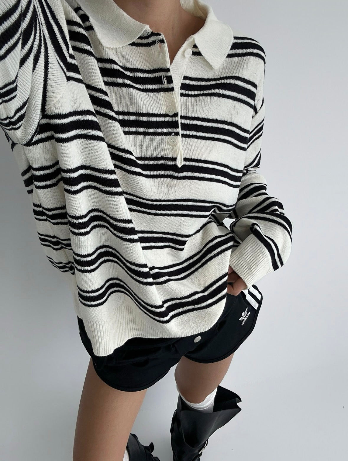 【🇰🇷韓國連線】Loose Fit Striped Collar T Shirt