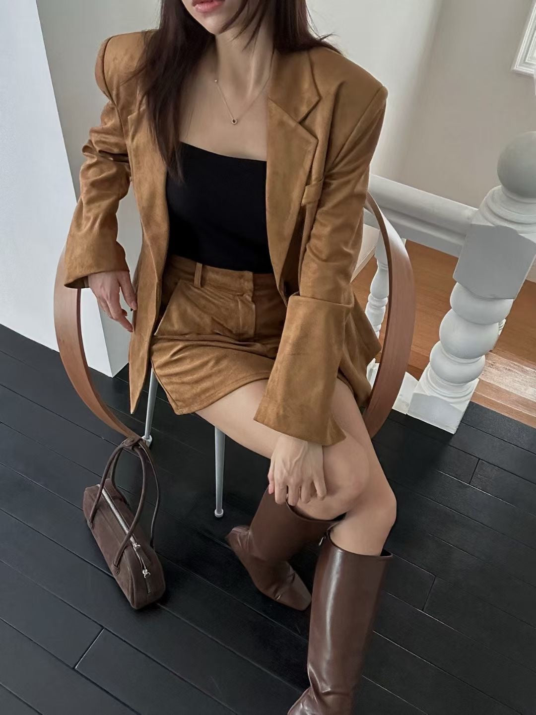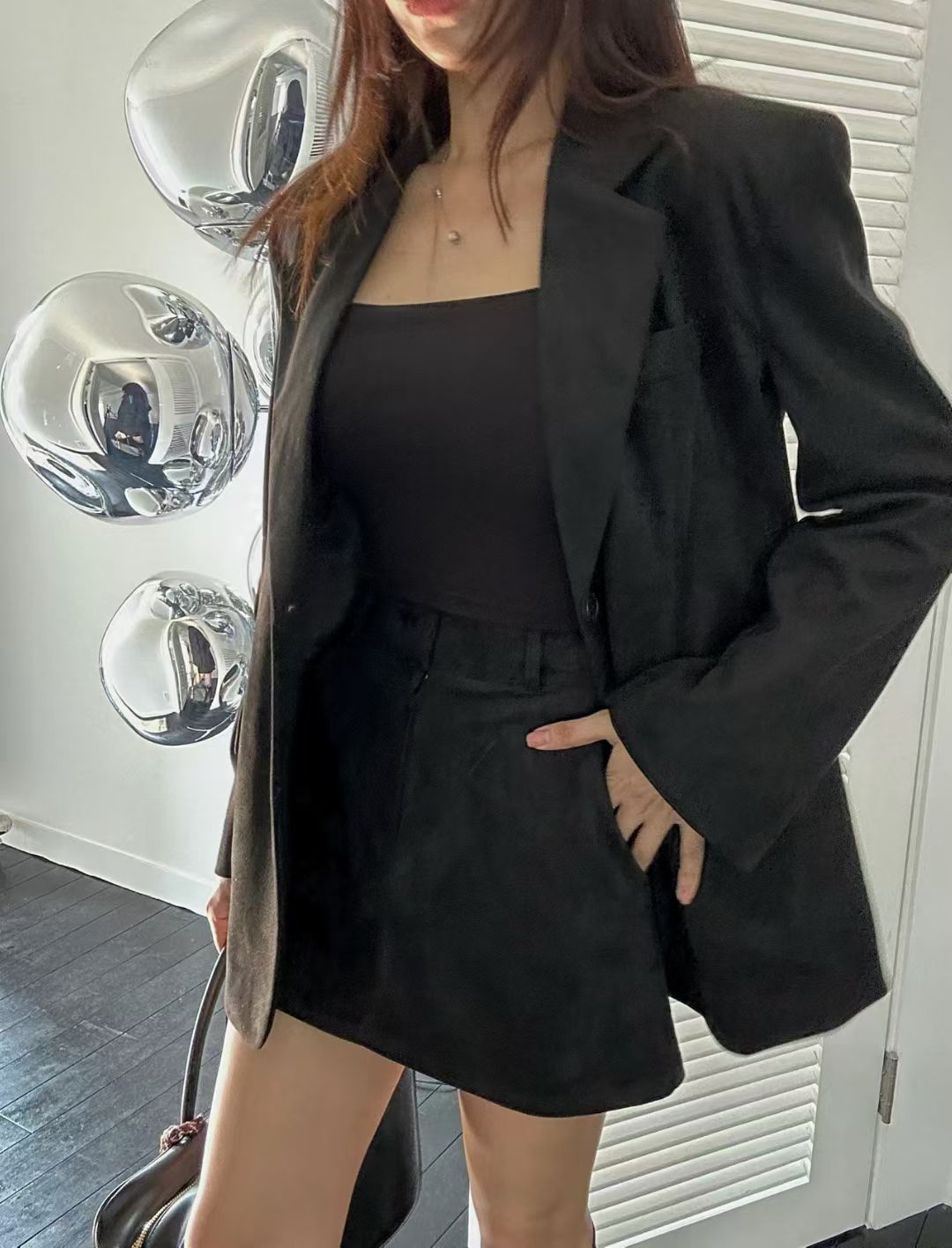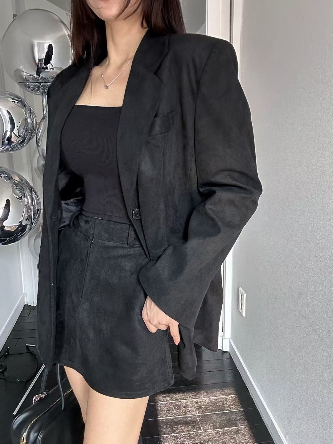 【麂皮西裝套裝|可分開入手】Solid Suede Pocket Blazer Set