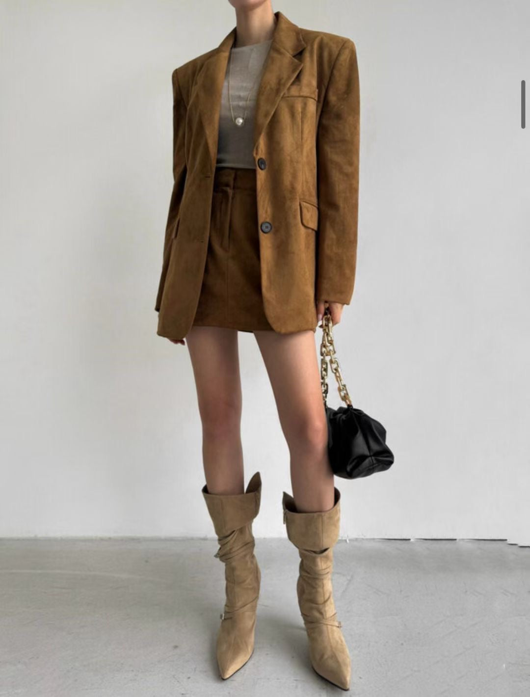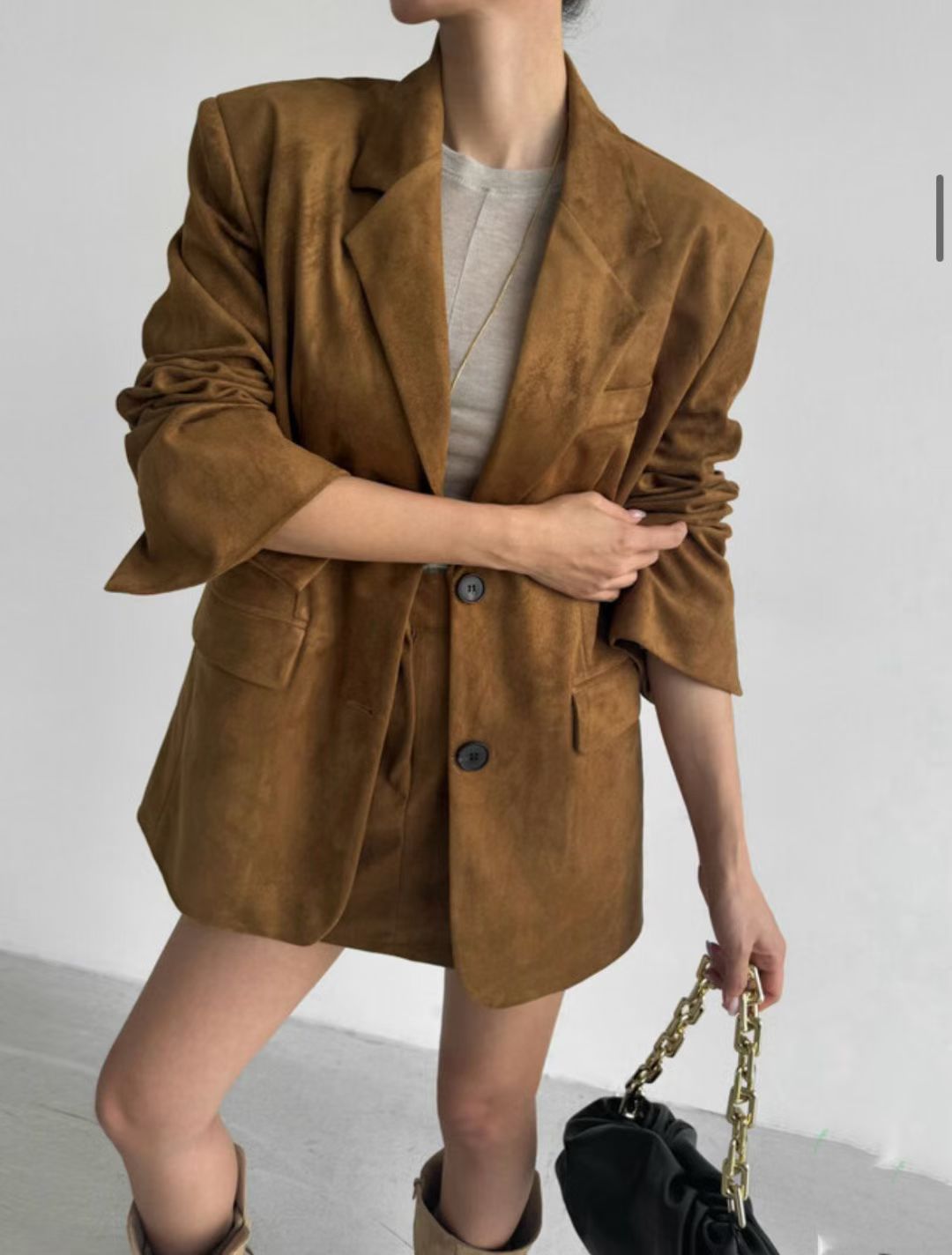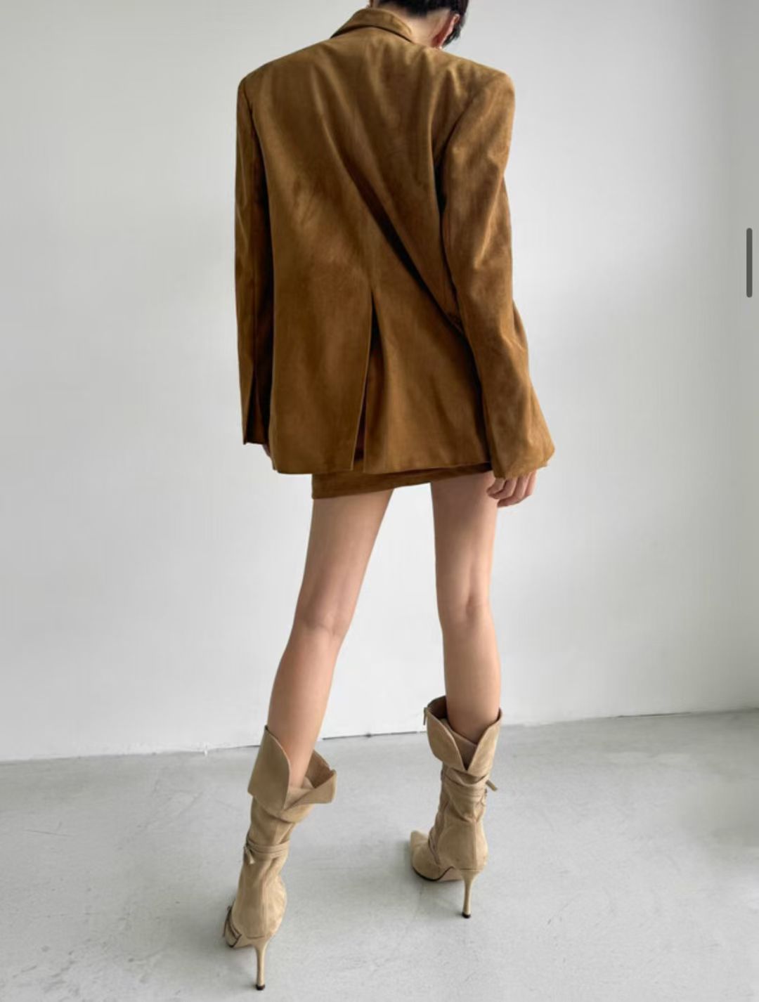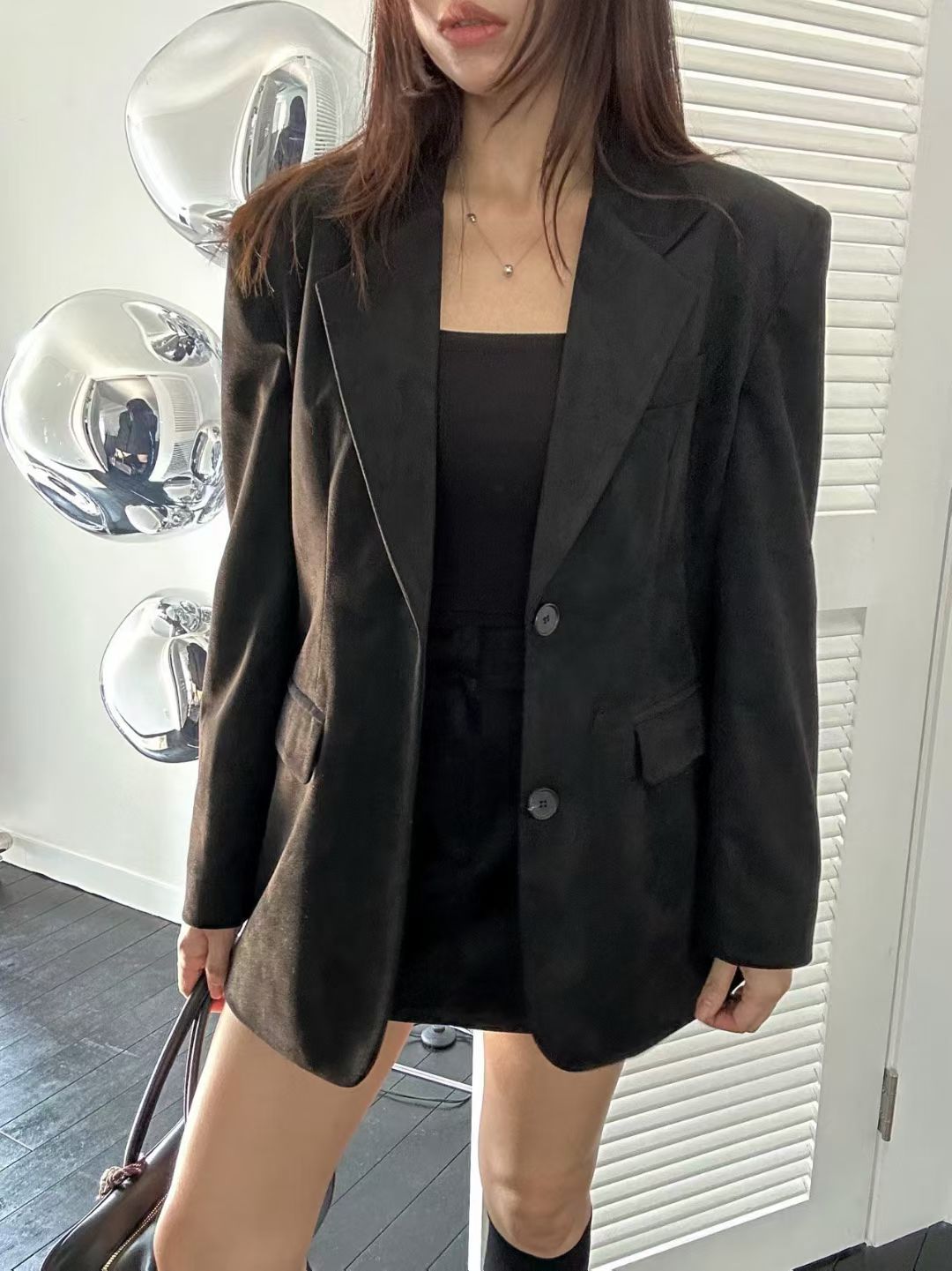 【麂皮西裝套裝|可分開入手】Solid Suede Pocket Blazer Set