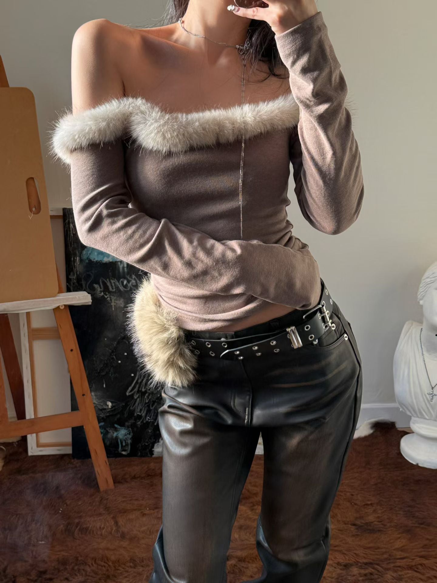 【千禧辣妹style🩶】Fluffy Melo Off Shoulder Top