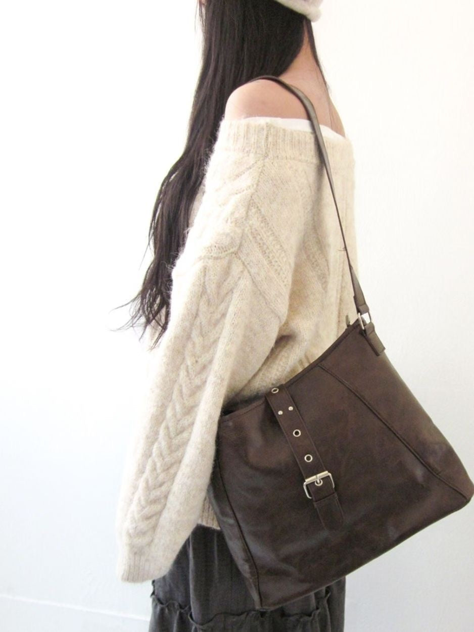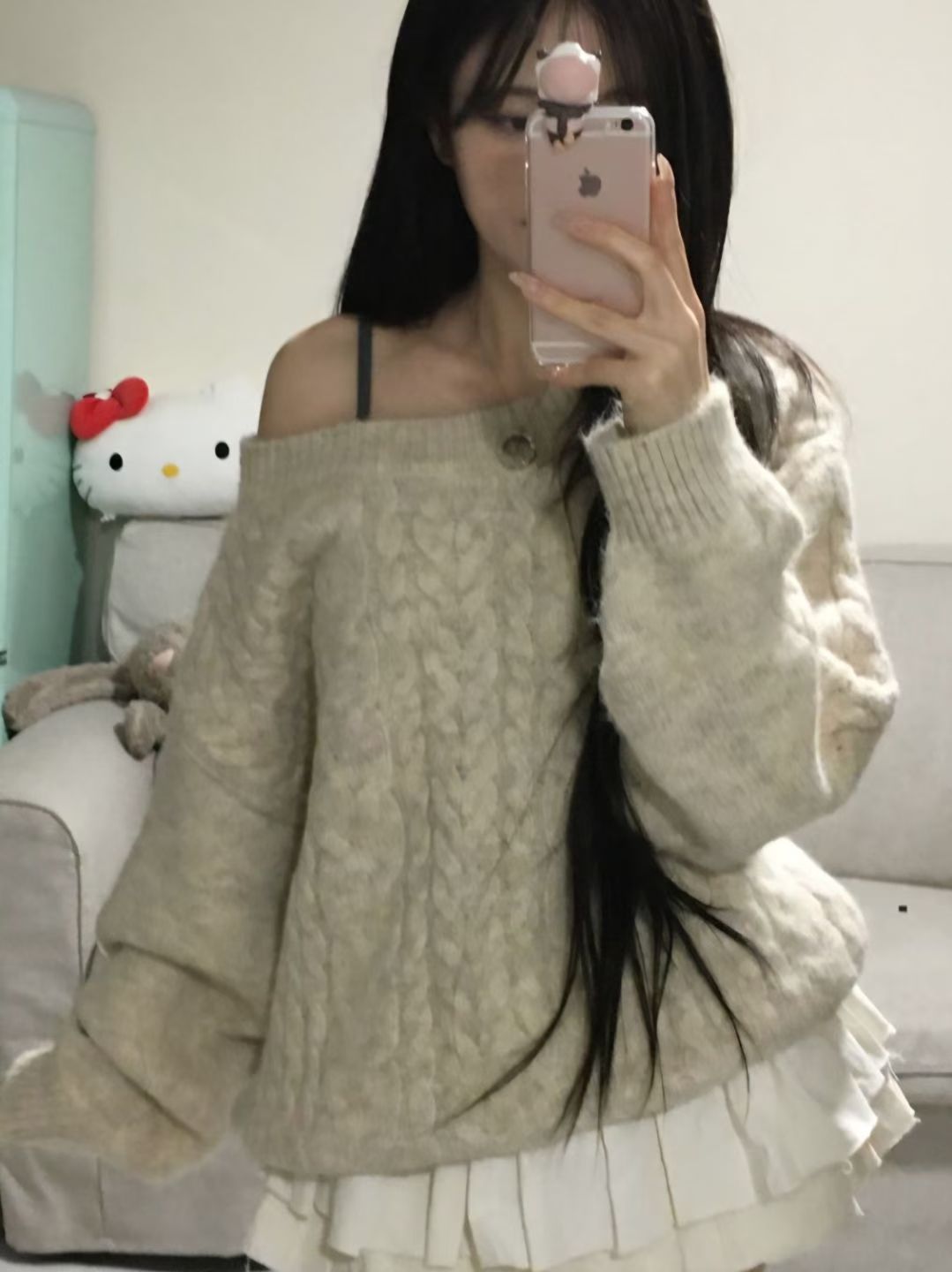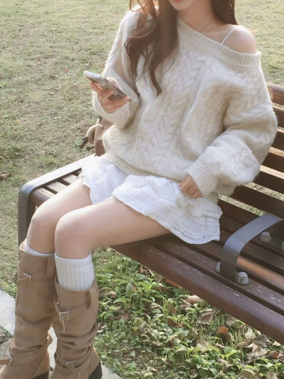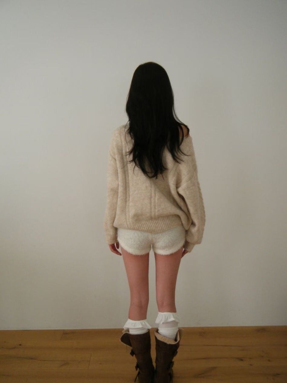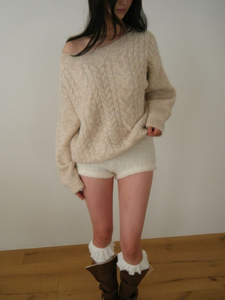 【麻花單肩針織Top】Cable Ribbed Off Shoulder Cardigan